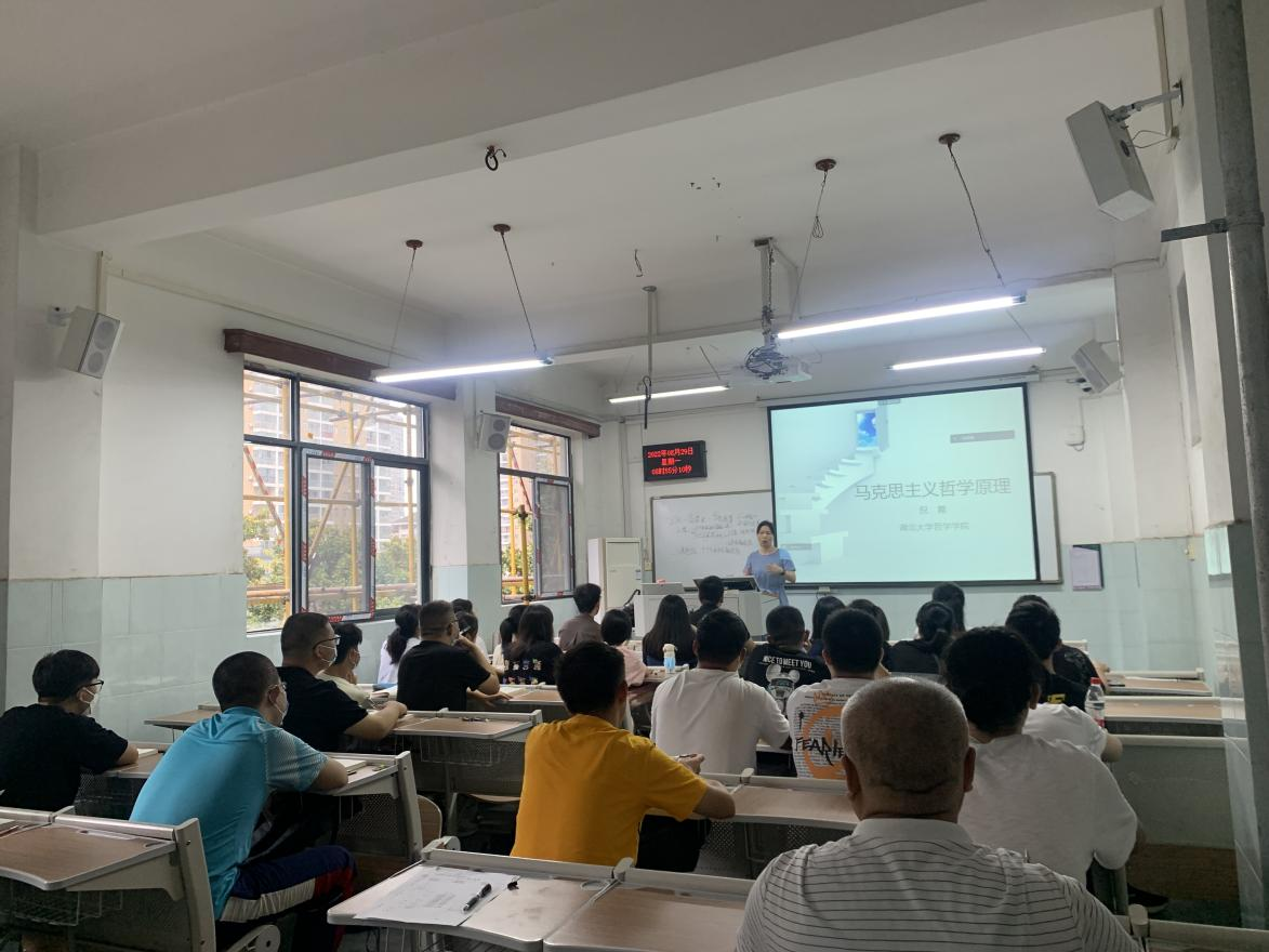 学院领导分别在教2-305和教2-308聆听了倪霞老师给2021级哲学班上的《马克思主义哲学原理》和肖雄老师给2020级哲学班上的《中国现代哲学》两个课堂的教学活动,并对任课老师授课内容、学生听课过程、课堂整体效果等情况作了详细记录与评价。倪霞老师向2021级同学们介绍了马克思主义哲学原理的特点、所内含的辩证法维度以及其批判性和革命性,并与同学们一起热烈讨论了马克思主义哲学原理在中国的具体实践。肖雄老师从历史进程的角度介绍了近代中国的发展与新儒学的产生之间的内在联系,讲述了宋明理学与中国现代哲学主题的联系和发展,并深入到儒家的价值原则和人伦规范的合理性内涵。开学第一天本科教学秩序井然,课堂气氛活跃,教学效果优良,各项工作有条不紊地在推进之中。