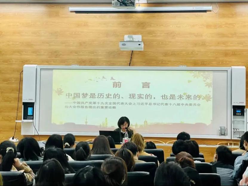第二堂团课邀请了校团委余欢老师以“青年责任与担当”为主题,分“忆往昔,峥嵘岁月稠”、“看今朝,奋斗正当时”和“展未来,砥砺向前行”三个部分展开。余欢老师表示,习近平总书记在党的十九大报告中谈到了“广大青年要坚定理想信念,志存高远,脚踏实地,勇做时代的弄潮儿,在实现中国梦的生动实践中放飞青春梦想,在为人民利益的不懈奋斗中书写人生华章”,并以此为开篇,向同学们深刻阐述了历史和现实证明,新时代青年要有理想、有担当,国家就有前途,民族就有希望,实现我们的发展目标就有源源不断的强大力量。