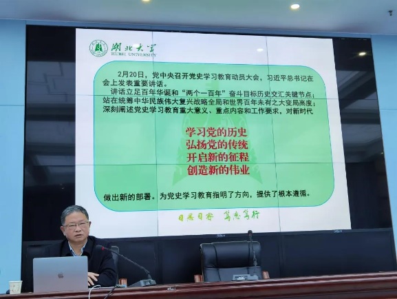 檀书记强调,开展党史学习教育,要学懂弄通做实习近平新时代中国特色社会主义思想,进一步增强“四个意识”,坚定“四个自信”,做到“两个维护”。结合党的重要文献与著作、重大事件与影响、重要人物与会议等实例,对开展党史学习教育为什么学、学什么、如何学、怎么做等问题进行了详细解读,给全院师生党员上了一堂鲜活生动的党课。