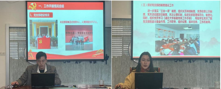 陶文佳副教授和宋伟副教授分别作了365英国教职工第一党支部和第二党支部的工作汇报。两位老师分别结合不同的实际情况对党建工作与教学的结合做出了恰当的调整,主张党支部学习教育与科研工作相结合,校内校外、线上线下、中国哲学与外国哲学相结合,从而提高各位教职工学习的积极性,更好地推进党内各项工作的开展。