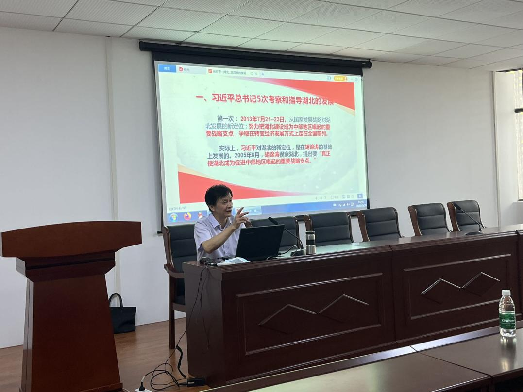 报告会上,徐方平教授围绕习近平总书记五次考察和指导湖北的发展,提出以“深入贯彻习近平总书记提出的正确处理改革的五大关系”和习近平总书记考察湖北中的讲话与《习近平谈治国理政》的相关性为契机,掀起学习的新高潮。他通过详实的史料、生动的例证,回顾了习近平总书记五次考察湖北的详细情况,介绍了党的主要领导人对湖北省发展的高度关心和重视,阐述了本次学习的重大意义和目的。