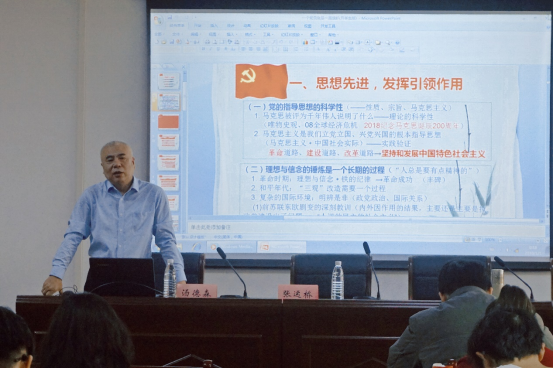 紧接着开班仪式后,汤德森书记为学员们作了主题为“一个党员就是一面旗帜”的首场辅导报告。