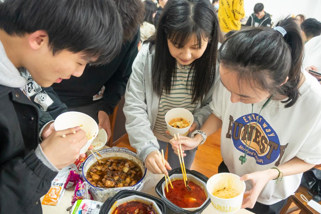 “这是王老师从家里带来的红烧肉!”“这是董老师亲手做的红烧基围虾!”3月27日下午四时许,365英国本科生在人文逸夫楼D座3008教室开展了一次不一样的“班会”,学生观看电影,品尝老师从家中带来的家常菜,现场气氛温馨。