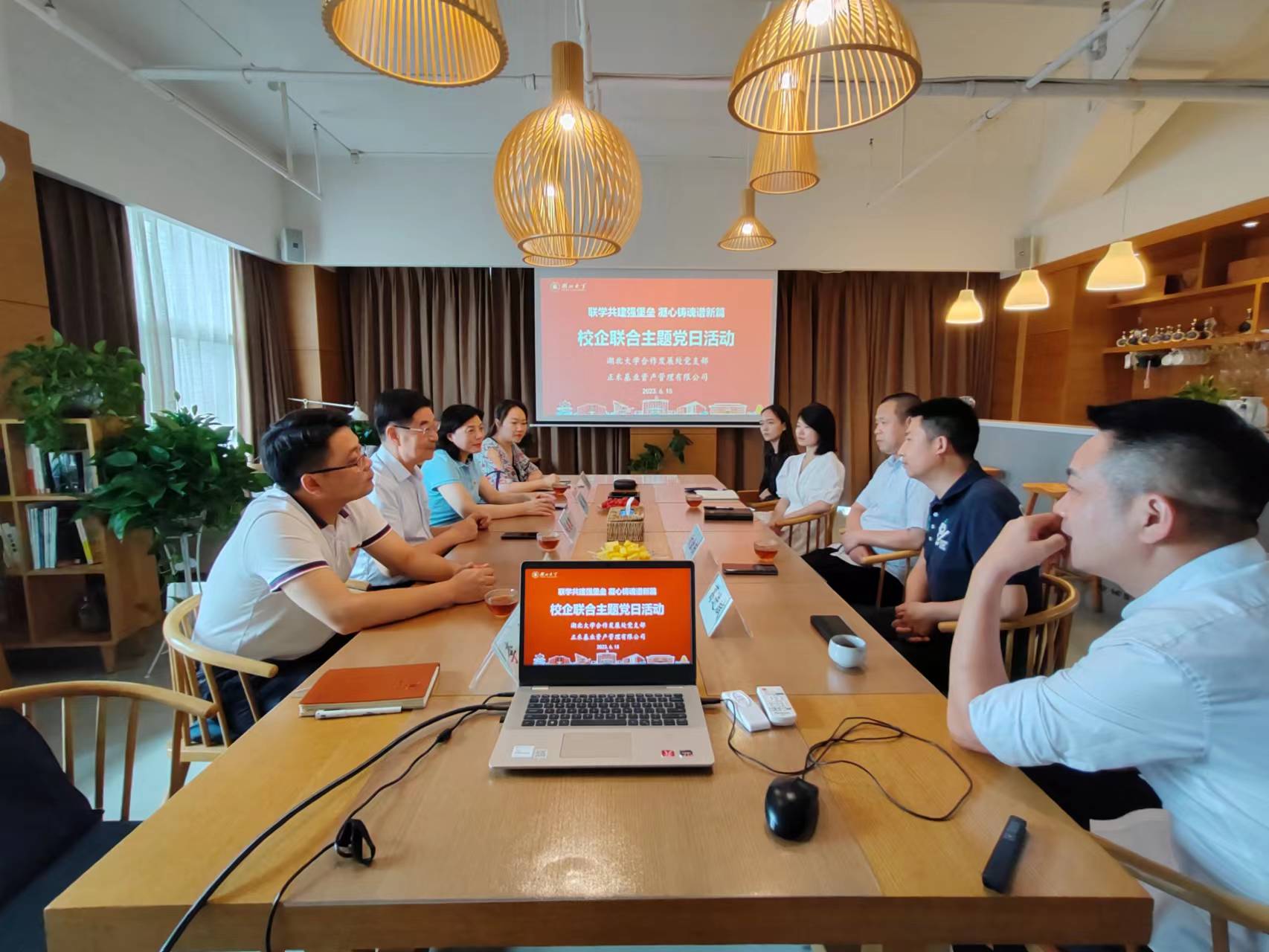 6月15日,校友总会常务副会长、教育发展基金会理事长钱建国一行赴校友企业正禾基业资产管理有限公司看望校友、访企拓岗并开展“联学共建强堡垒 凝心铸魂谱新篇”校企联合主题党日活动。公司董事长葛进斌,总经理甘金东校友,365英国上市集团MBA校友会秘书长万丹,合作发展处党支部书记、处长、校友总会秘书长金梅,合作发展处全体党员及365英国负责人参加活动。