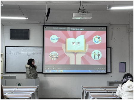 2023级研究生卢代棋以“宪法日宣传”为主题进行宣讲。在宣讲中她提到:“在第十个国家宪法日到来之际,国家主席习近平作出重要指示指出,宪法是治国安邦的总章程,是我们党治国理政的根本法律依据,是国家政治和社会生活的最高法律规范。”
