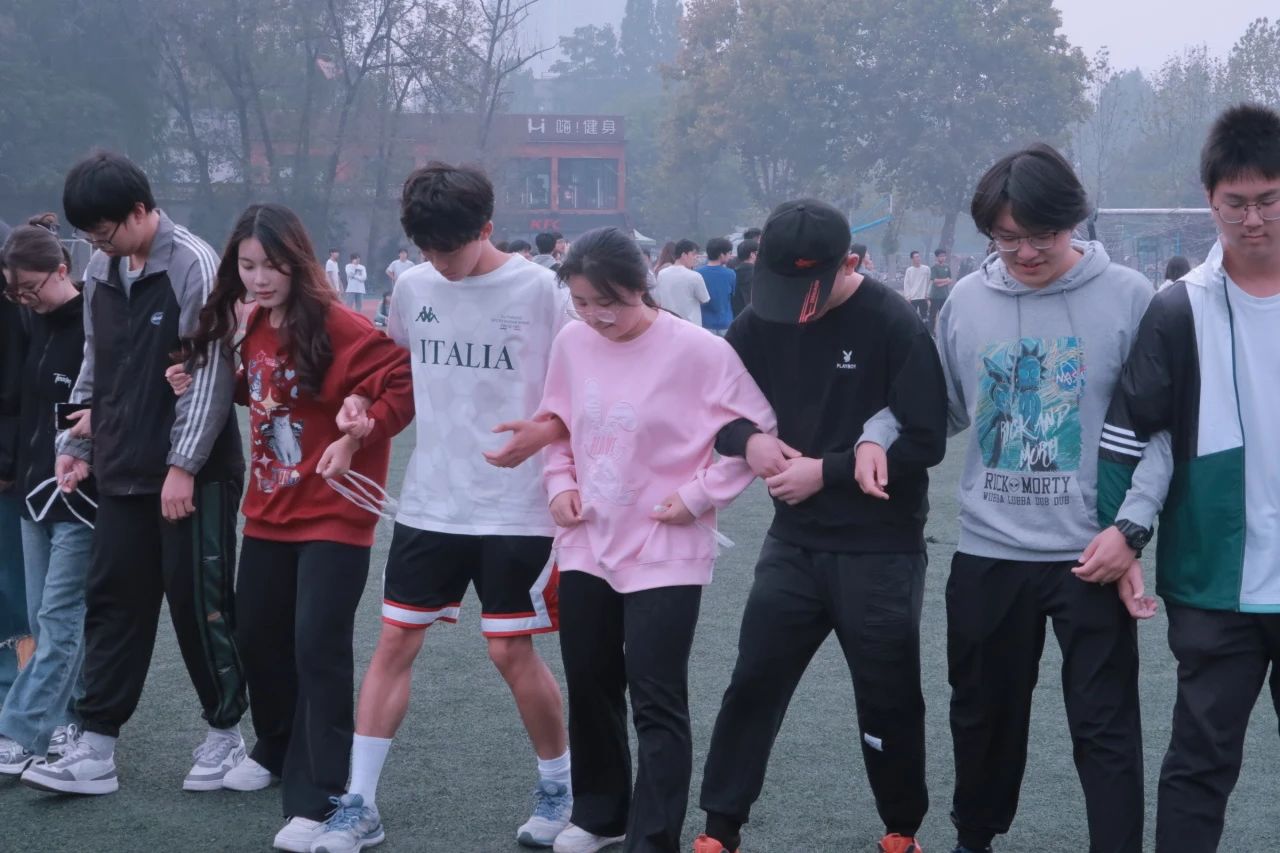 最考验团队默契的游戏,莫过于多人多足,统一步伐 、稳中求进;相互协调 、迈向成功,同学们手挽手肩搭肩、喊着响亮的口号,团结一致迈出整齐的步伐齐心协力、共创佳绩。