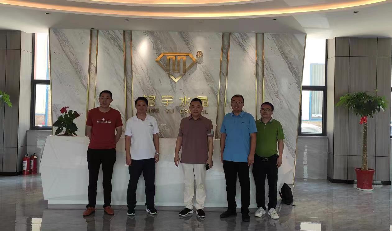 在黄梅县大胜工业园内,陈文超走访了湖北铭宇水晶饰品有限公司,与公司董事长陈海峰、当地税务部门负责人和湖大校友等进行了座谈交流,并实地调研考察了公司生产流水线。湖北铭宇水晶饰品有限公司是一家专注于水晶水钻生产、销售、研发于一体的国家高新技术企业、湖北省专精特新“小巨人”企业,连续多年被湖北省国家税务总局评为年度纳税“A”级企业。陈文超详细了解企业用人需求,向企业介绍学校学科专业设置情况,并积极推介优秀毕业生。