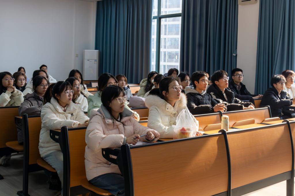 “我是谁?我从哪儿来?我到哪儿去?”陈涵英的分享从哲学三问出发,鼓励学生们深入剖析自我,找准自我定位和发展方向定位,从此刻起规划未来三年的学习与生活。她以图片的形式展示自己对于大学生活的规划,在场新生纷纷拍照记录。同时,陈涵英表示不能只拘泥于教学内容,要试着跳出框架,主动去接触了解更多方面的信息,积极参与各类竞赛和活动,不断激发兴趣和打开思路。