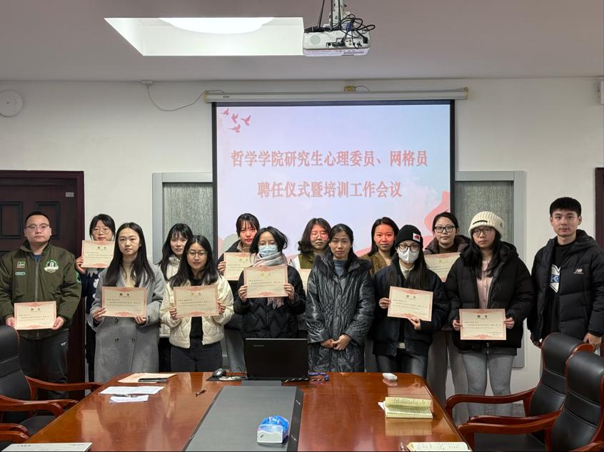 会议伊始,辅导员吴天祥宣读了学院研究生心理委员和网格员聘任名单,党委副书记王翠为同学们颁发了聘书。随后,心理委员代表张彤进行了题为《“哲”里有我“网”先行--哲院网格员专业知识培训会》的培训,对常见心理问题的识别与应对、心理危机干预技巧等多个方面进行了系统阐释与解读,帮助学院学生心理工作者掌握基础工作能力。