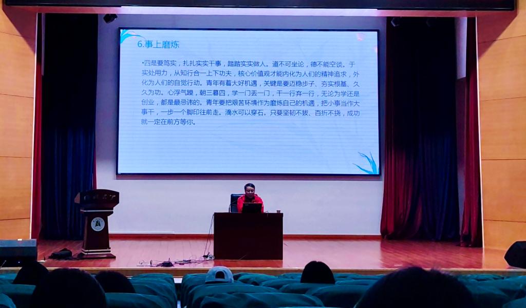 周海春聚焦时代方位、青年根本任务与成长路径三个方面,结合新时代背景,系统梳理了习近平总书记寄语青年的部分语录,并从青年价值观树立、人生道路选择、学问才华积累、美德修养提升、实践能力锤炼等模块进行了细致阐释。他鼓励青年学生要多读书、读好书,在阅读中结合生活实际,汲取真智慧、获得真感悟、追求真善美,以此消解成长困惑,实现内心的豁达与明澈。
