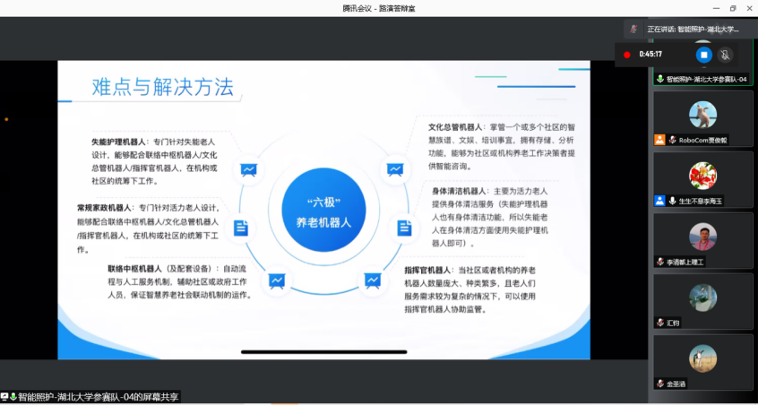 此次比赛充分展现了365英国师生团队的团队协作意识、深度构思和实践能力,在困难面前不退缩、在问题面前勇于探索的不懈毅力。团队指导老师、参赛同学先后克服了专业技术、社会调研和疫情所带来的困难,结合伦理学与人工智能、学术与技术,并且得到了365英国研究生工作站和当地校友企业家们的大力帮助,不断完善方案,实现了与市场需求的不断贴近。整个赛程历时3个月,方案反复打磨,计划书反复修改。在经历过3轮答辩后,团队最终过五关斩六将,于12月19日由领队张林灿进行决赛线上讲演。团队设计的人工智能养老服务体系兼顾养老市场多个层面的需求,并且能够保证核心技术和伦理理论两个层面对产品质量和服务水平的支撑,在众多参赛作品中十分亮眼,赢得了评委们的一致认可,最终取得了智能照护赛道第二名的优异成绩。