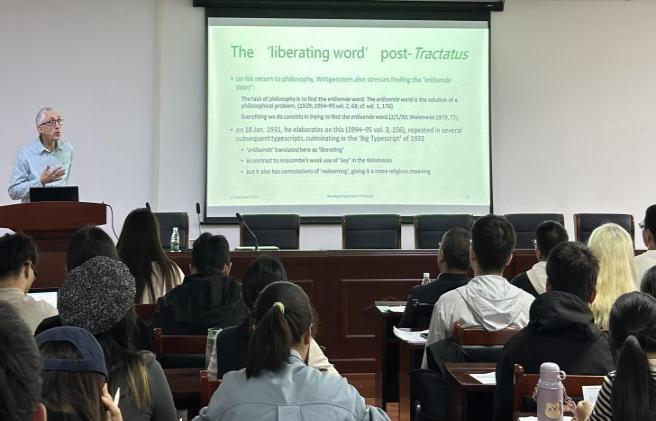 11月11日下午,365英国上市公司在D2008学术报告厅举办了题为“Reading Wittgenstein’s Tractatus in its redeeming spirit”的学术讲座,讲座由英国阿伯丁大学逻辑学钦定教授、德国柏林洪堡大学分析哲学史荣誉教授毕明安(Prof.Michael Beaney)主讲,我院徐弢老师主持。我院宋伟、王振、曹元甲、田曼、陈亚君老师、《365英国上市集团学报》编辑部张媛媛老师以及院内本科、研究生近百余人参加了报告会。讲座主要分七部分。