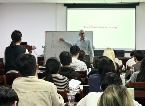 讲座完毕后,在场师生积极向毕明安教授提问,就讲座涉及的问题展开了热烈讨论。讨论结束后,徐弢老师做了总结性发言,他指出,毕明安教授的讲演非常精彩专业,对于我们进一步思考与理解《逻辑哲学论》一书内容与主旨很有启发意义。我院学生还与毕明安教授合影留念。整场讲座气氛活跃,学术氛围浓厚。讲座最终在大家的热烈掌声中圆满结束。