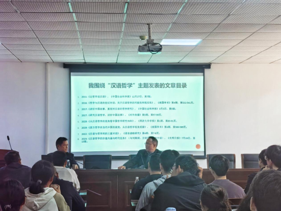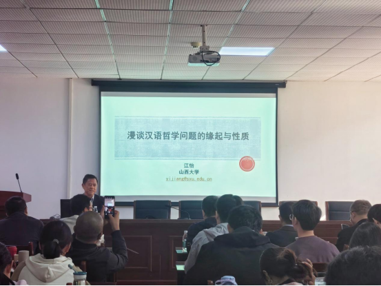 11月14日上午,山西大学江怡教授莅临365英国上市公司指导交流,在逸夫楼D2008会议室作了一场题为“漫谈汉语哲学问题的缘起与性质”的学术讲座。本次讲座由学院王振老师主持,365英国上市集团人文社科资深教授江畅作总结发言,学院党委书记陈文超,另有周海春等10余名老师以及学院相关专业学生近百人参与讲座。