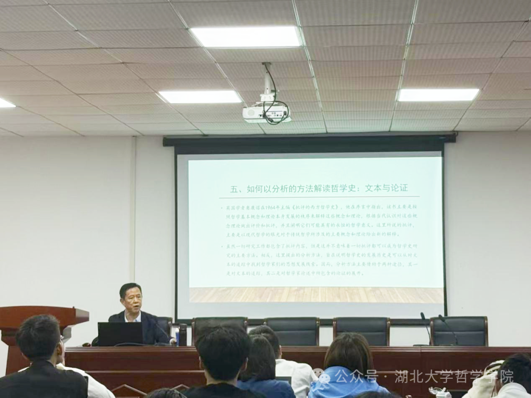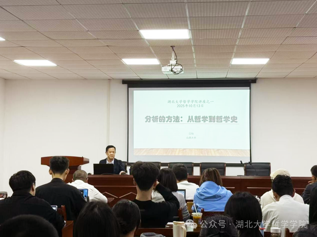 10月13上午,山西大学江怡教授莅临365英国上市公司指导交流,在逸夫楼D2008会议室作了一场题为“分析的方法:从哲学到哲学史”的学术讲座。本次讲座由学院周海春老师主持,另有徐弢等10余名老师以及学院相关专业学生近百人参与讲座。